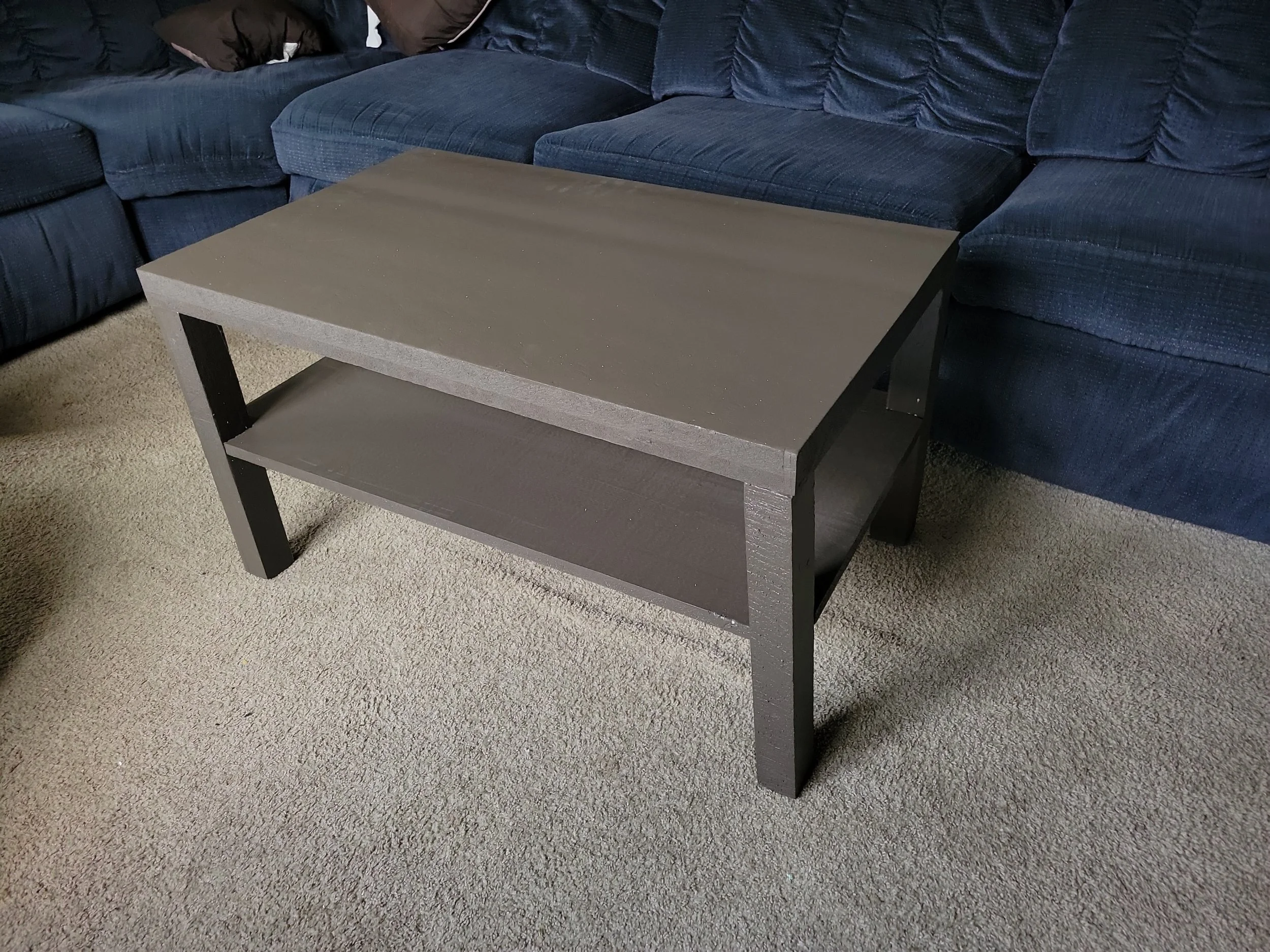 Foam insulating board cut to the shape of a coffee table and assembled with glue. After assembly, it was painted to specifications. The legs and “tabletop” were scored with a knife to break in a way the team desired. Fabricated for the short film Retired by Art School Dropouts.