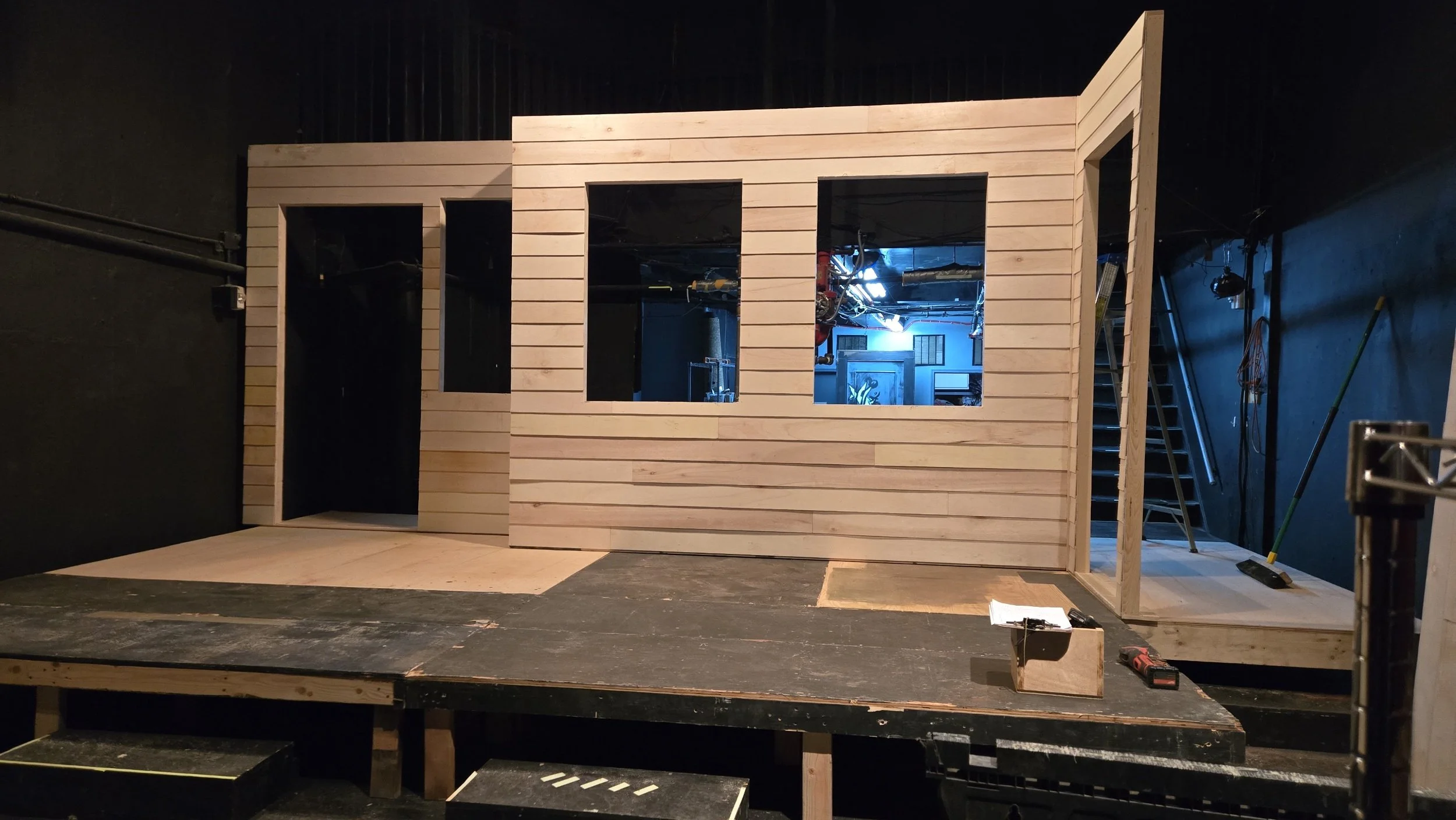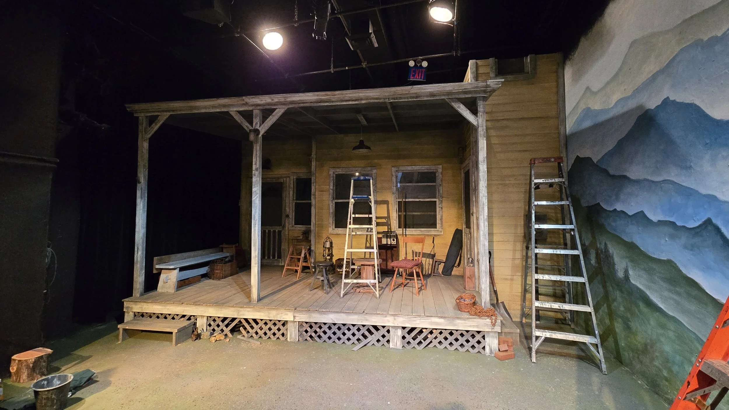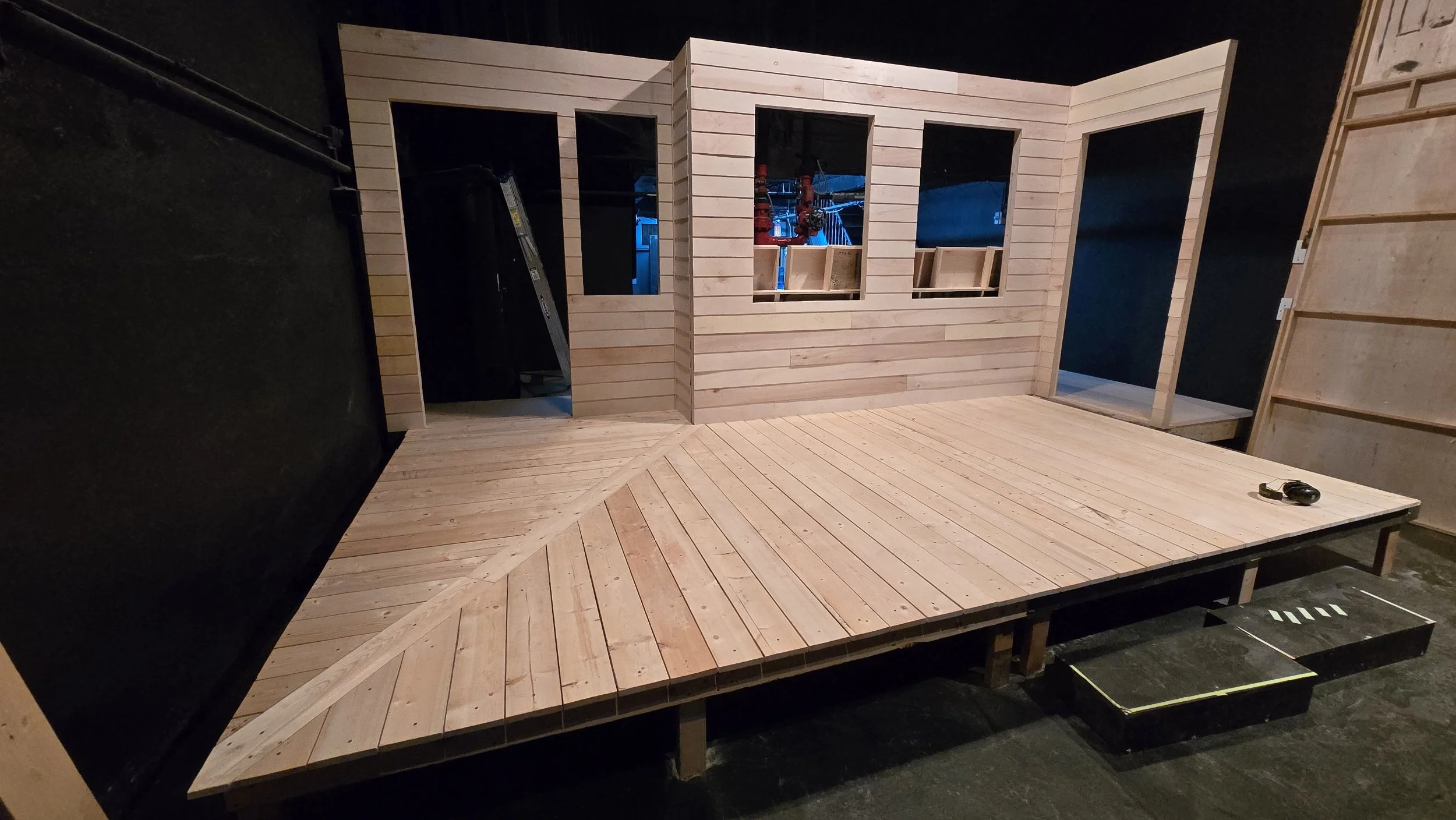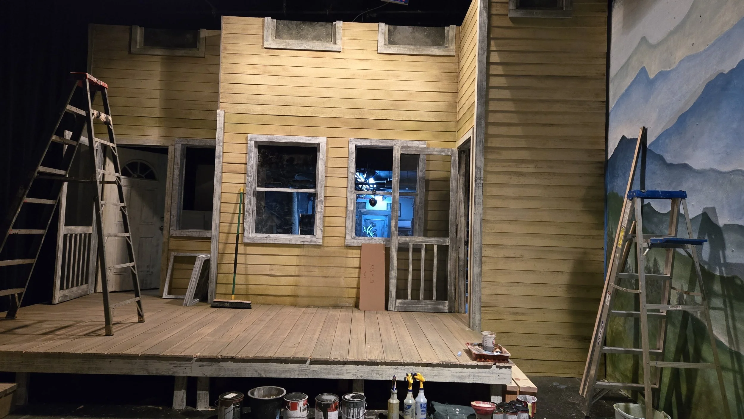 Set constructed for Urban Stages production of The Porch on Windy Hill. Myself and another carpenter, Jen Fedus, executed designs by Andrew Robinson under the Technical Direction of Jay Seevers. The walls are flats covered in 5 1/2” strips of luan to create clapboard siding. The windows were built to be functional, and both the deck and lattice were distressed to add a weathered and “lived in” feeling to the home. The set painting was overseen and executed by Scenic Charge Sarah Schunke.